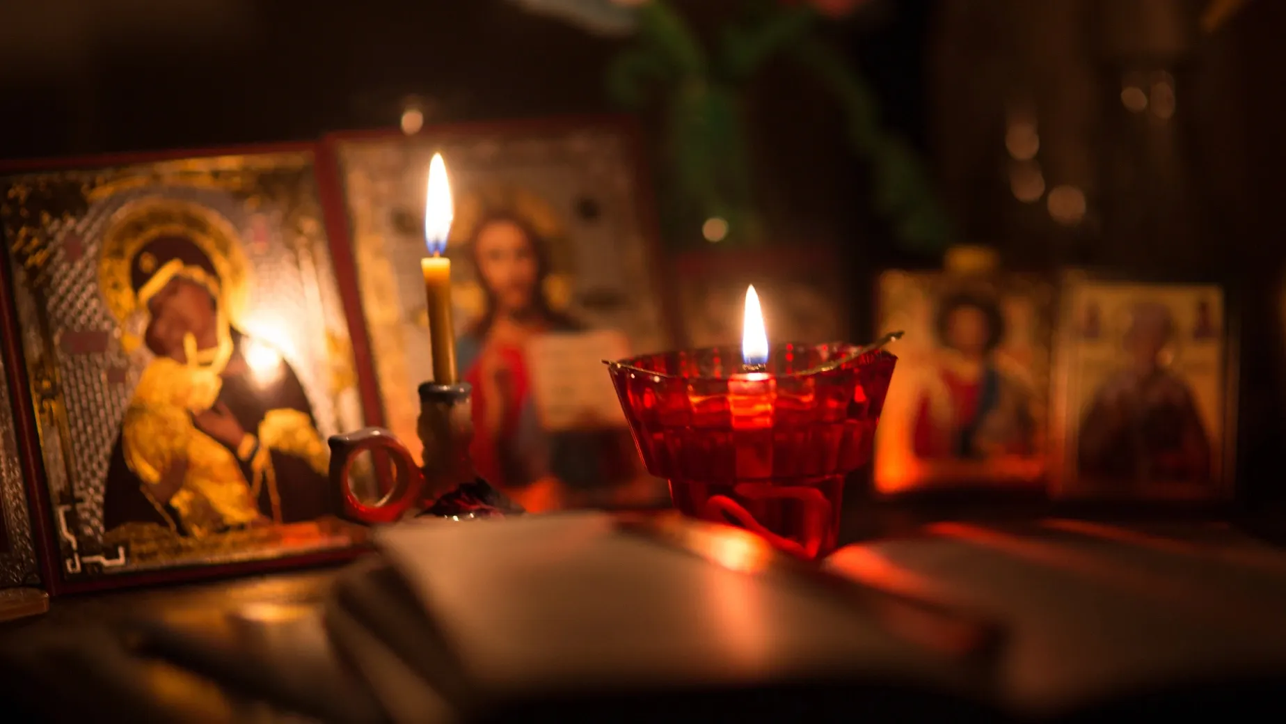 По традиции иконостас оформляют в восточной части комнаты — в той стороне, где восходит солнце, которое олицетворяет Спасителя. На полочку перед иконами можно поставить лампадку или свечу и положить Святое Писание с молитвенником.