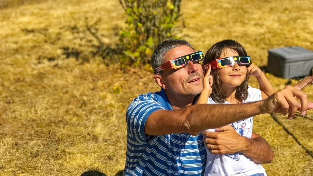 Наиболее безопасным способом станет использование солнечных очков, предназначенных для наблюдения затмений. Они блокируют почти весь ультрафиолетовый, инфракрасный и видимый свет, защищая глаза от повреждений. Очки должны соответствовать международным стандартам безопасности, например ISO 12312-2.