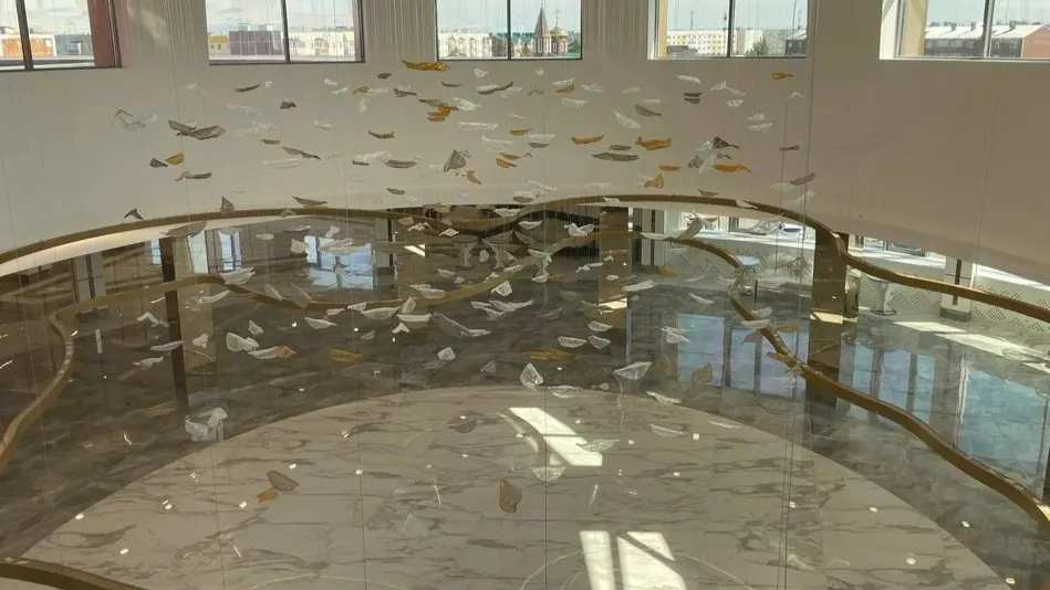 В помещениях выполнен особый декор. При входе установлена динамическая подсветка, напоминающая северное сияние. Потолок третьего этажа украшает композиция со стеклянными лепестками, которые движутся от дыхания посетителей.
