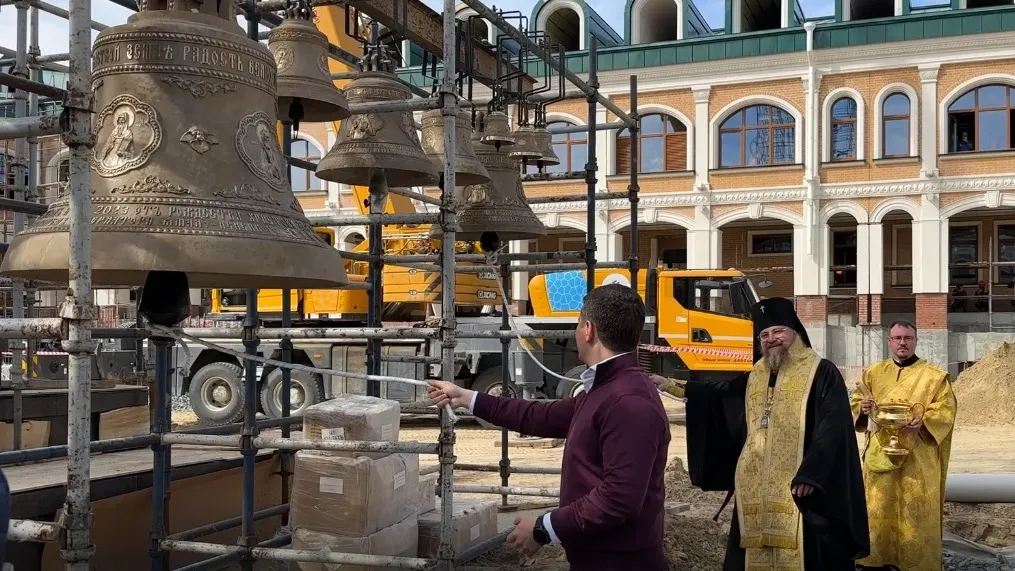 Сразу после окропления колоколов первыми в них звонили архиепископ Николай и губернатор Ямала Дмитрий Артюхов.