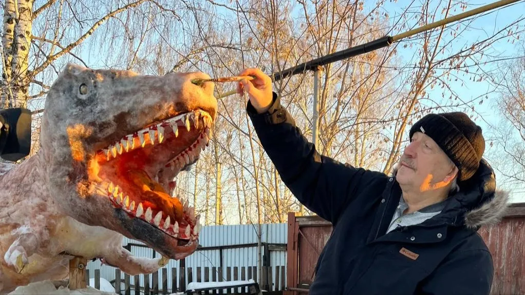 В преддверии Нового года тюменец вылепил из снега тираннозавра